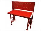 Banc de travail métallique Plateau repliable : gain d'espace Dimensions : (L) 1330 x (l) 670x (h) 1380mm Avec panneau perforé pour le rangement des outils