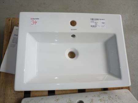 3 vasques simples à encastrer Marque : Duravit, inconnue, Ideal Standard Quantité et dimensions : 1 x 59 cm x 43 cm 1 x 62 cm x 50 cm 1 x 48 Cm x 46 cm Matière : porcelaine Coloris : blanc, gris Etat : articles stockés depuis 10 ans, poussiéreux, il est conseillé de se rendre à la journée de visite.