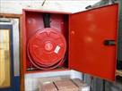 Lance incendie dans son armoire murale Dimensions armoire : 77 cm x 97 cm x 27 cm Longueur tuyau estimée : 50 mètres Etat : non testé mais semble en bon état