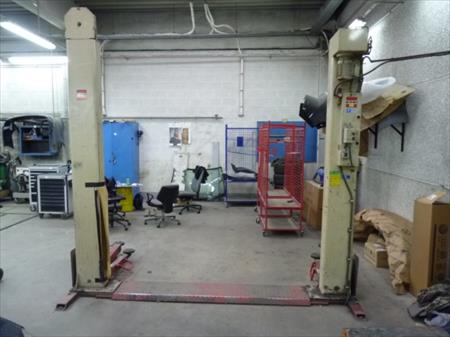 Pont de garage 2 colonnes Marque : Koni Modèle : KO2222 Année : 1985 Tension : 380 V triphasé Puissance : 2,2 kW Capacité de levage : 2,2 T Pression : 160 Bar Hauteur de levage maximale : 1,40 m Dimensions : 3 m x 1,75 m x 2, 65 cm Etat : testé Remarque : démontage et enlèvement à charge de l'acquéreur