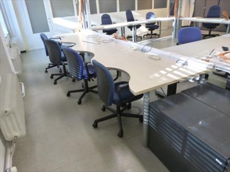 Mobilier de salle de conférence Tables Quantité et dimensions : 3 x 160 cm x 80 cm x 75 cm 6 x 200 cm x 100 cm x 73 cm Chaises Quantité : 15 Armoires à volets Dimensions : 122 cm x 48 cm x 198 cm Quantité : 3 Remarque : situé au 1er étage, l'ascenceur fait 80 cm x 138 cm x 200 cm.Démontage et enlèvement à charge de l'acquéreur.