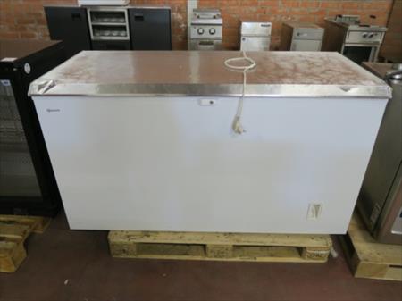 Congélateur Marque : Gram Modèle : CF510S Tension : 230 V monophasé Puissance : 135 W Capacité : 438 L Classification climatique : N Dimensions : 150 cm x 69 cm x 84 cm Etat : non testé et utilisé, mais serait en état de fonctionnement Remarque : présences de coups, coin supérieur droit à reconditionner