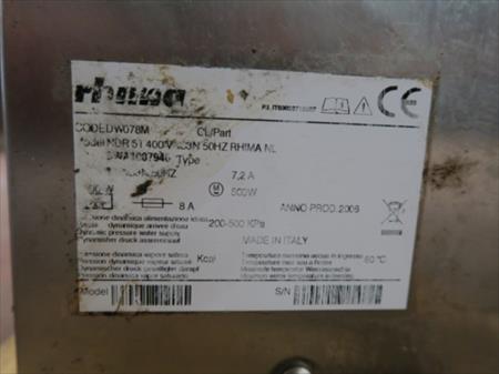 Lave-vaisselle Marque : Rhima Modèle : DR 51 Année : 2006 Dimensions : 59 cm x 60 cm x 85 cm Tension : 400 V Puissance : 500 W Etat : non testé et utilisé, mais serait en état de fonctionnement