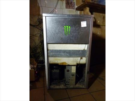 Machine à glaçons Marque : Angelo Po Modèle : S46A Tension : 230 V Puissance : 530 W Dimensions : 48 cm x 57 cm x 86 cm Etat : testé, a démarré lors de l'inventaire Remarque : grille avant manquante