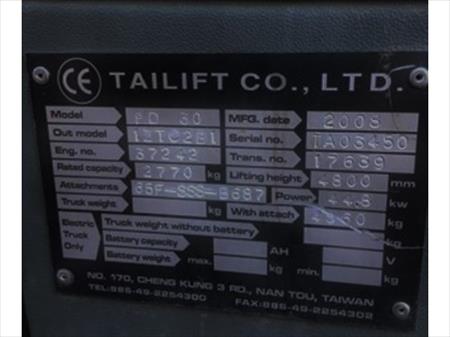 Chariot élévateur Marque: Tailift Modèle: FD 30 Année de construction: 2008 Max. hauteur de levage: 4800 mm Heures de fonctionnement de lecture PLM: 4016 heures