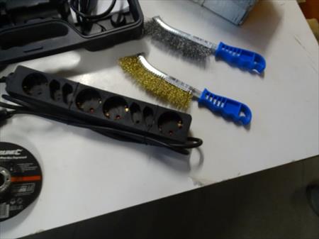 Capot de protection pour meuler et tronçonner - Blocage de larbre - Tête métallique - Poignée supplémentaire fixable à 2 positions - Clé à bride - Avec 2 disques à tronçonner au diamant