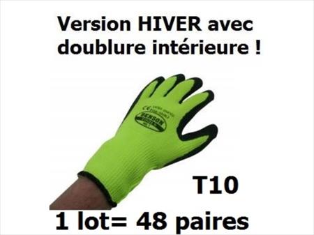 Lot de 48 paires de gants HIVER T10 Avec enduction de latex. Idéal pour manutention, bâtiment etc 1 Lot= 48 paires Déstockage avant inventaire de fin d'année !