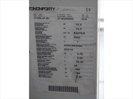 Pompe à chaleur (à vérifier suivant la plaquette) Marque : Tonon Forty Dimensions : 119 cm x 44 cm x 113 cm Etat : non testé