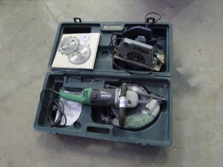 Disqueuse Hitachi Modèle : CM 9 SR Tension : 220 V monophasé Puissance : 2000 W Munie d'un disque diamant : diamètre 23 cm Etat : testé et en état de fonctionnement Scie circulaire portative Marque : Bosch Modèle : GKS 54 Tension : 220 V monophasé Puissance : 1020 W Diamètre de lame : 16 cm Etat : testé et en état de fonctionnement