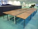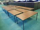 Tables en mélaminé, piétement métallique Quantité : 13 ex. Dimensions : 160x80x75cm Localisation : V2