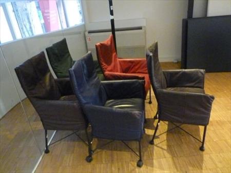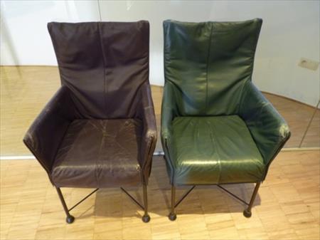 Chaises avec recouvrement cuir Quantité : 5 Etat : bon état, cuir usé Différentes couleurs Localisation : shop-Meir