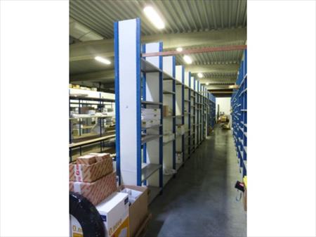 Etagères en métal Dimensions : 19 m x 0,4 m x 2,9 m Nombre de tablettes : 94 Contenu non inclus Démontage à charge de l'acheteur