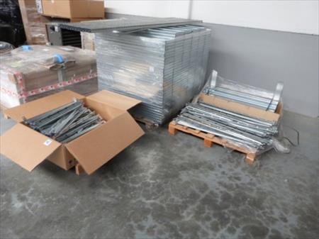 Étagères en métal galvanisé Nombre de montants verticaux : 14 Dimensions d'une étagère : 624 cm x 62 cm x 220 cm Nombre total de tablettes : 16 Nombre de fixations de tablettes 60 cm : 67 Nombre de fixations de tablettes 100 cm : 55 État : bon Remarque : démontage et enlèvement à charge de l'acquéreur