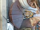 Bac à sable pour grue Largeur de bac : 35 cm Dimensions d'encombrement : 140 cm x 35 cm x 235 cm Etat : usagé, tel que sur photos
