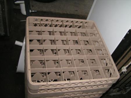 Plusieurs paniers pour lave-vaisselle traiteur, 1x coutellerie, 6x verre