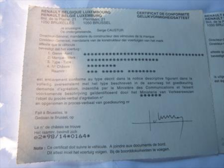 - Certificat de contrôle technique (valable jusqu'au 22/11/2017)