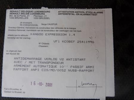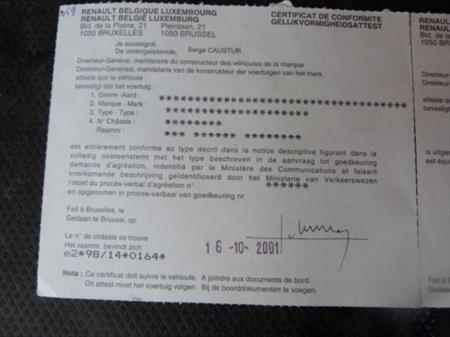 - Certificat de visite du contrôle technique (valable jusqu'au 23/05/2016)