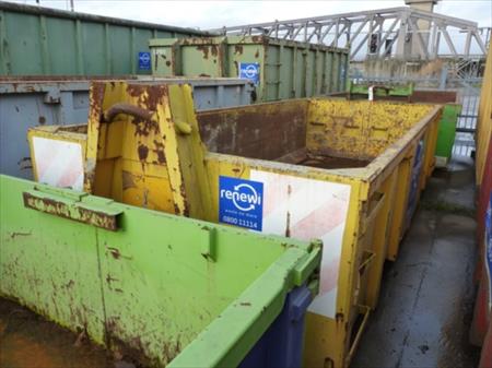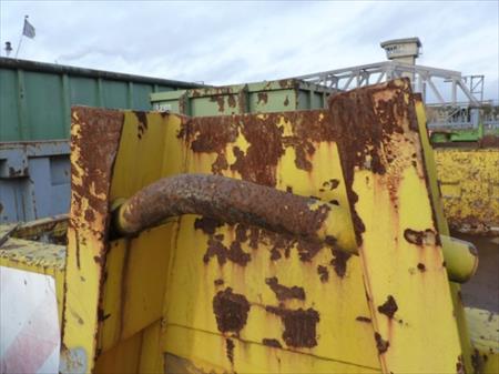Container de chantier Marque : ANG Volume : 9,7 m³ Dimensions intérieurs : 4,85 m x 2 m x 1 m Type de portes arrières : ouvrantes Poids : 1670 kg Etat : bon, corrosion sur le plancher Réf : Geel