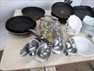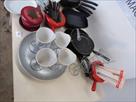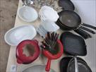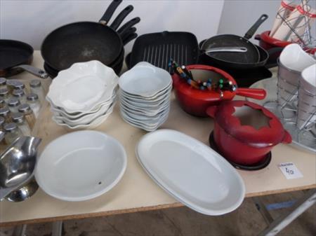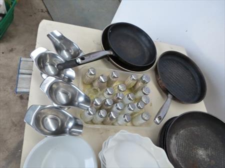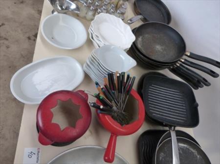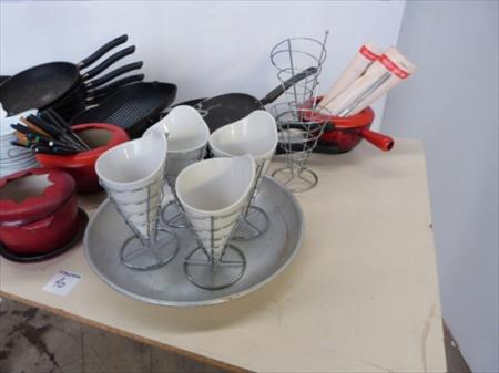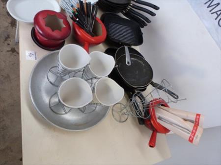 Poêlons, casseroles pour fondues, cornets de frites, ... Lot tel que sur photos Paniers non inclus dans le lot