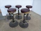 Tabourets de bar Piètement métallique, assise en cuir artificiel Diamètre de la base : 45 cm Hauteur d'assise : 78 cm Quantité : 5 Etat : assises à reconditionner