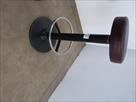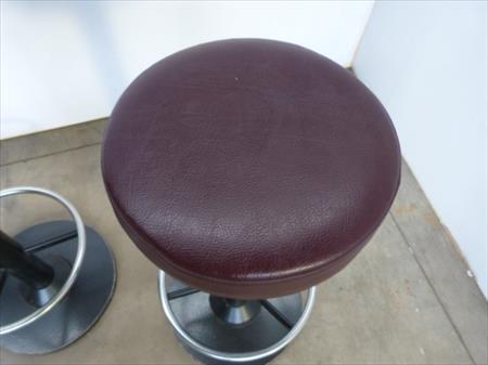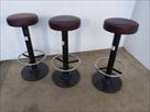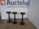 Tabourets de bar Piètement métallique, assise en cuir artificiel Diamètre de la base : 45 cm Hauteur d'assise : 87 cm Quantité : 3 Etat : bon