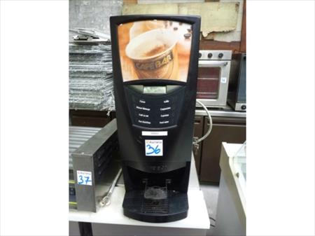 Machine à café et chocolat chaud Marque : Café Bar Modèle : inconnu Tension : 230 V monophasé (pas de cordelière) Dimensions : 24 cm x 50 cm x 64 cm Remarque : système de filtration Brita inclus Etat : testé