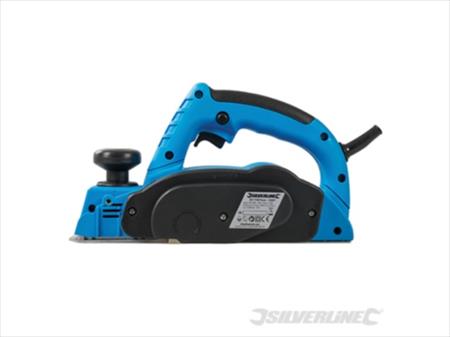 Rabot électrique 82 mm, 710 W Fers réversibles carbure de tungstène et semelle rainurée pour chanfreiner. Fourni avec courroie, clé, paire de balais de charbon de rechange et sac à sciures/copeaux. Largeur des fers : 82 mm, capacité de rabotage de 2 mm par paliers de 0,5 mm. Régime à vide de 17 000 tr/min. Etat: Neuf