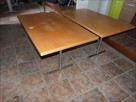 Tables rectangulaires Piètement métallique Tablette mélaminé Dimensions : 80 cm x 140 cm x 72 cm Quantité : 2 Etat : bon mais possibilité de coups ou griffes