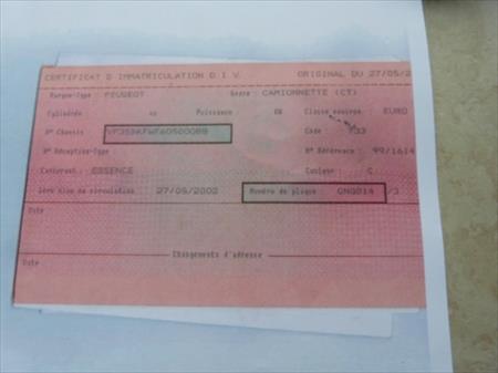 - Certificat de visite au contrôle technique (valable jusqu'au 03/06/2018)