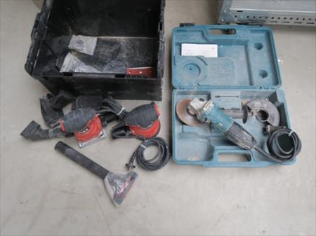 Ponceuse circulaire Marque : Flex Modèle : XS 713 Année : 2018 Tension : 230 V monophasé Puissance : 230 W Diamètre : 12 cm Etat : non testé Ponceuse carré Marque : Flex Modèle : MS713 Année : 2016 Tension : 230 V monophasé Puissance : 220 W Surface de ponçage : 11 cm x 11 cm Etat : non testé Meuleuse d'angle Marque : Makita Modèle : GA5030 Année : 2013 Tension : 230 V monophasé Puissance : 720 W Diamètre : 125 mm Etat : non testé