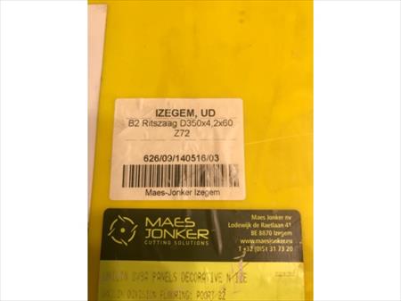 Lame de scie 350mm 350x4.25x60 RPM maxi 5000 Marque: Maes Jonker Type: DP MEC Etat: utilisé, comme neuf