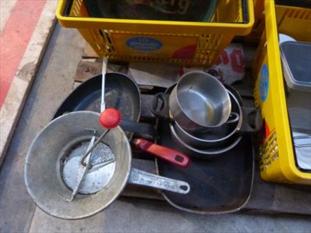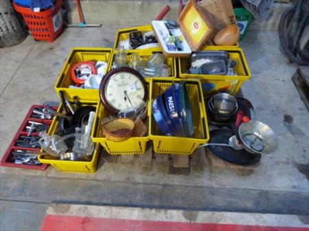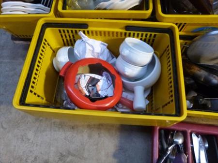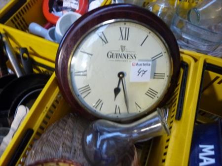 Vaisselle, plateaux, plats, horloge Guiness, couverts,