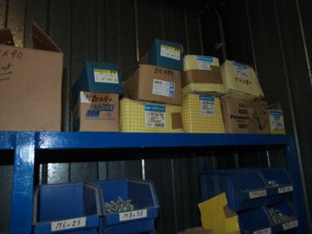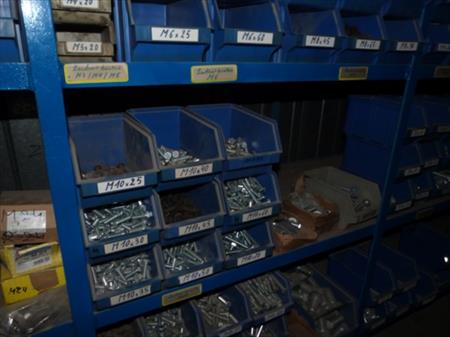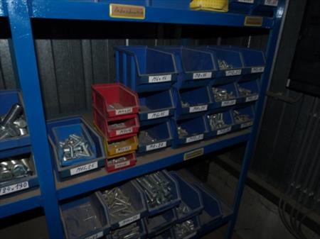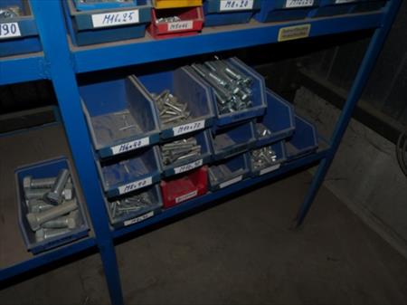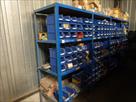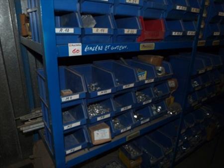 Etagère métallique non démontable Dimensions : 365 cm x 61 cm x 200 cm Visserie, boulonnerie Quantité : 157 bacs