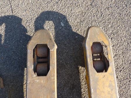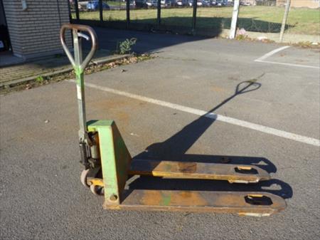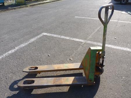 Transpalette Marque : inconnue Modèle : inconnu Capacité : 2000 kg Longueur des fourches : 113 cm Etat : usagé