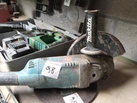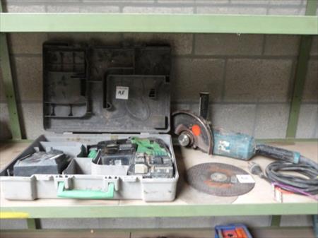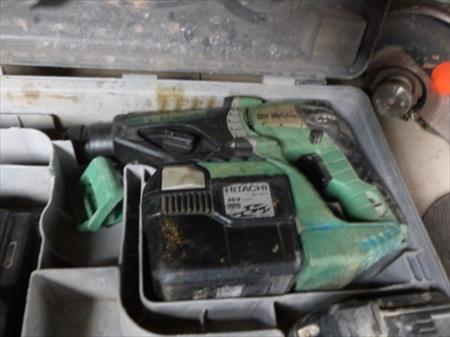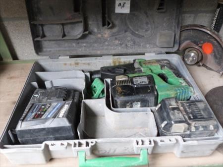 Foreuse burineuse Marque : Hitachi Modèle : DH360AL Etat : testé Fourni avec 2 accus et leur chargeur Disqueuse Marque : Makita Tension : 230 V monophasé Diamètre : 23 cm Etat : balais à reconditionner Fournis avec 2 disques