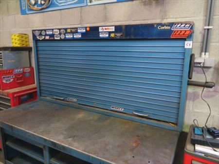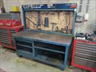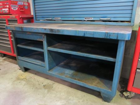 Etabli métallique Epaisseur de tablette : 4 mm Dimensions : 180 cm x 80 cm x 88 cm Etat : bon Etabli mural métallique Dimensions : 180 cm x 17 cm x 90 cm Etat : bon Remarque : outils non inclus