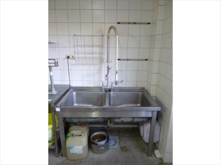 Double bac évier inox avec douchette Marque : Rubbens Dimensions d'un bac : 60 cm x 60 cm x 30 cm Dimensions : 140 cm x 80 cm x 83 cm Remarque (s) : Chauffe eau inclus, douche incluse. Démontage et enlèvement à charge de l'acquéreur.