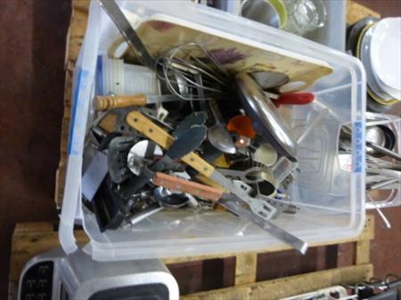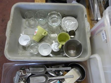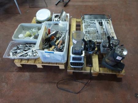 Vaisselle, ustensiles de cuisine, blender et moulin à café pour pièces ou à réparer Lot tel que sur photos