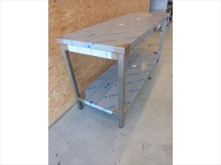 Table double tablette inox Dimensions : 170 cm x 60 cm x 85 cm Etat : matériel neuf Remarque : inox 430