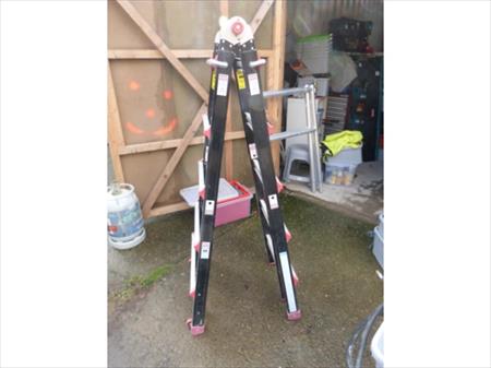 Echelle double face Dimensions repliée : 70 cm x 20 cm x 167 cm Remarque : pas de marque apparente Etat : bon