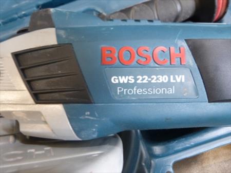 Disqueuse Marque : Bosch Modèle : GWS 22-230 LVI Année : 2009 Tension : 220 V Puissance : 2200 W Diamètre disque maximum : 23 cm Etat : testé et en état de fonctionnement, disque monté sur la machine : presque du neuf Machine fournie dans son coffret d'origine Remarque : la clé de serrage est manquante