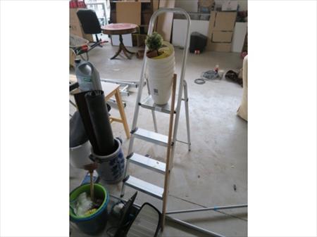ESCABELLE, DIVERS POTS, TABLE, SEAUX, TABOURET