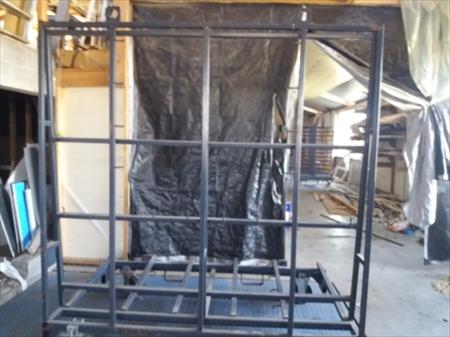 2 chariots sur roues amovibles afin de pouvoir prendre ceux-ci avec 1 élévateur. Dimension: 2 m x 1,20 m. Déjà utilisé mais en bon état, très solide.