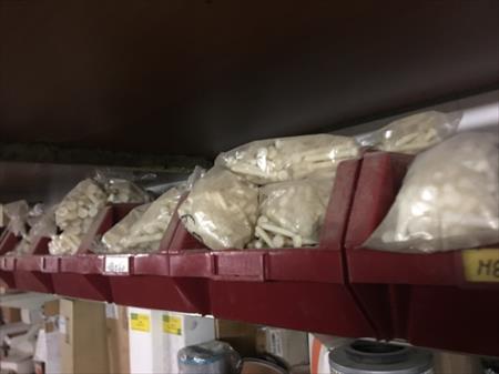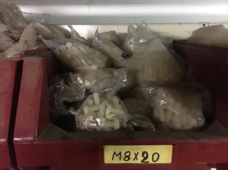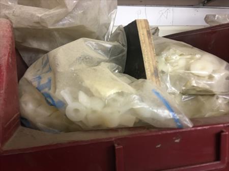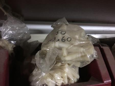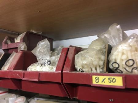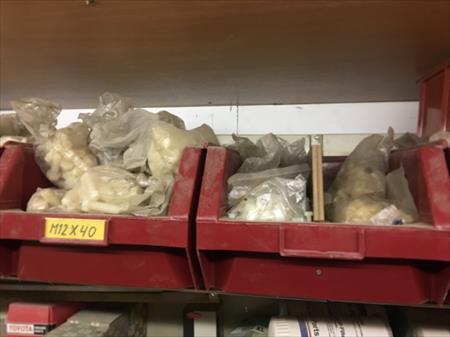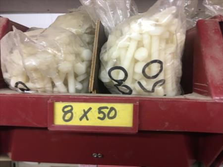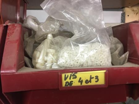 Quincaillerie Boulons, écrous, rondelles, et autres en nylons diamètre 5 à 16 Quantité: +-30 bacs de Mesures courantes : 8x50, 6x50 et d'autres