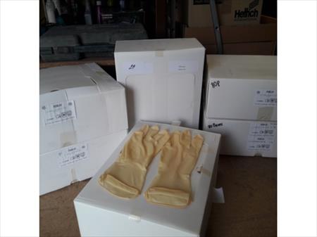 Paires de gants Materiaux: caoutchouc EU Quantité : 6 boîtes de 80 paires de gants. Remarque(s): Date d'enlèvement le 20/05 à respecter, pas d'autre possibilité d'enlèvement.