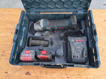 Disqueuse sur accus Bosch GWS 18 V-LI avec 2 accus de 18 Volt de 1,5 Ah et de 2,6 Ah Valeur neuve en coffret: 469 HTVA Matériel en état de fonctionnement, vente suite à la cessation d'activité Matériel livrable sur la région de Marche ou Bastogne.