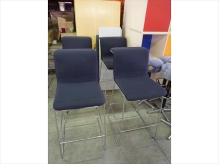 Chaises hautes piètements métalliques, assises et dossier en tissus Marque : Berteau et Bulo Hauteur d'assise : 76 cm Quantité : 6 Etat : bon