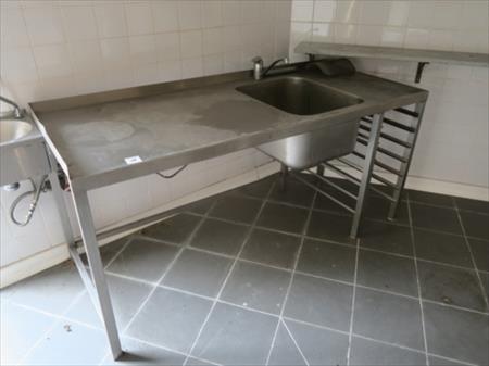 Evier inox simple bac Dimensions intérieures du bac : 60 cm x 50 cm x 30 cm Dimensions : 195 cm x 76 cm x 95 cm Etat utilisé