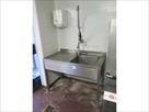 Douche et évier inox simple bac Dimensions intérieures du bac : 50 cm x 50 cm x 30 cm Dimensions d'encombrement : 120 cm x 70 cm x 92 cm Etagère murale Dimensions : 99 cm x 30 cm
