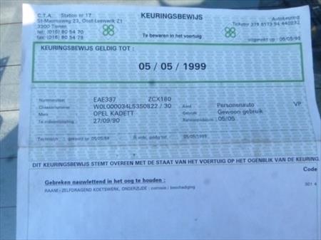 - Certificat de visite du contrôle technique (valable jusqu'au 05/05/1999